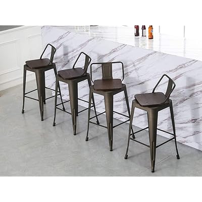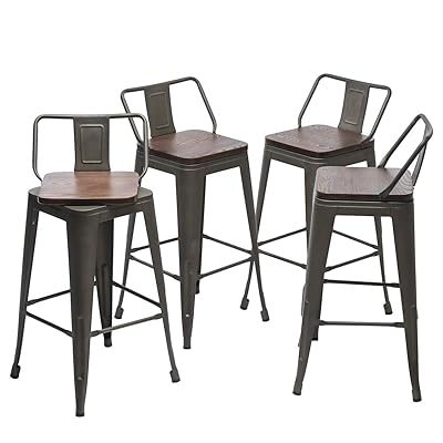 4.5 out of 5 stars. Lancaster table & seating clear coat frame ladder back bar height chair with antique walnut wood seat. Interchangeable back metal swivel bar stool with a star in the back. Silver interchangeable back swivel metal bar stool with circle and 3 slats. Hamrick industrial adjustable height bar stool. Swivel metal bar stools kitchen counter height stools industrial barstools set of 4 (24 inch, swivel low back black wooden) 4.5 out of 5 stars. Indoor use only read more Choose from contactless same day delivery, drive up and more. While most commercial metal bar stools can fit in any type of venue, some are better suited than others. The sully reclaimed wood and rebar swiveling bar stools with back, industrial bar stools, vintage bar stools, factory stools, counter stools. Checks off all your important features: 5% coupon applied at checkout. Kipling gunmetal gray metal swivel bar stool with back (17.52 in.